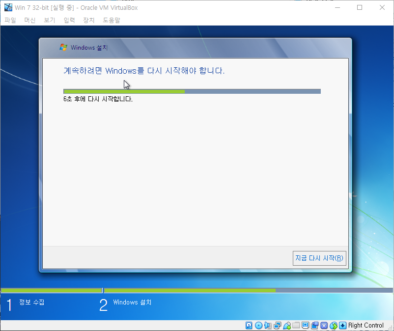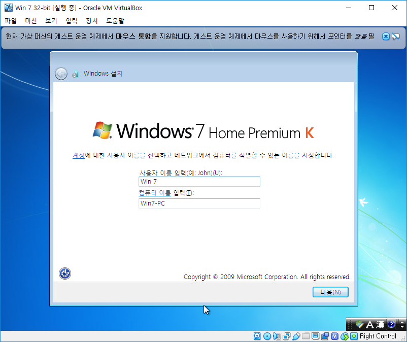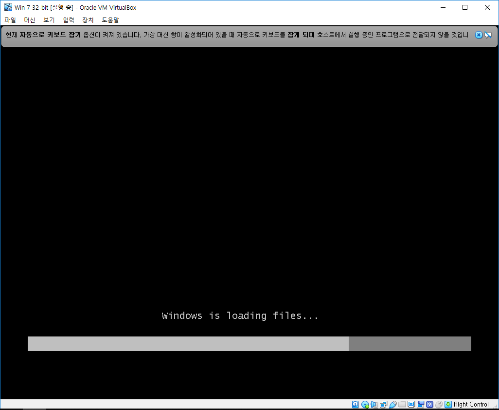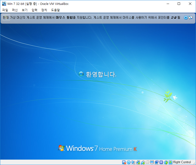 여기까지 VirtualBox로 Windows 7 32-bit 가상 머신을 만들고 실행해보았습니다.